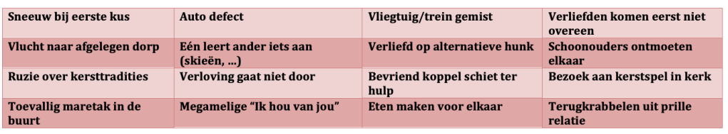 Vaak is de samenvatting van een verhaal in de tv-gids al voldoende om de ontknoping te voorspellen. Met ook de nodige randanimatie er rond. Mijn vriendin en ik hebben ons de voorbije jaren zo verdiept in dit unieke genre dat we onze eigen “Bingo” hebben opgesteld met alle clichés die wellicht de revue zullen passeren in de film. En vaak zijn alle vakjes vlotjes doorkruist. Doe gerust de test, amusement verzekerd!